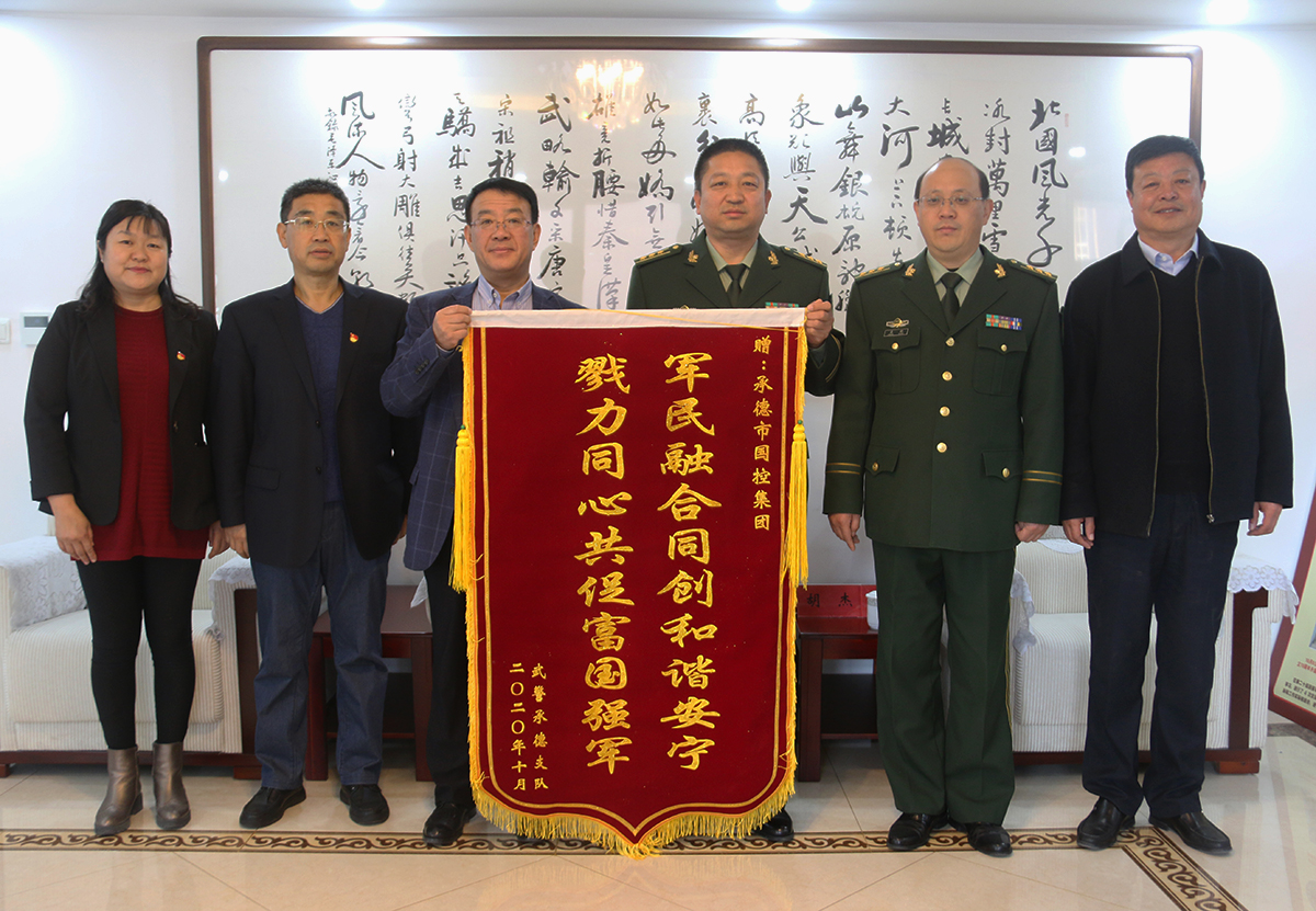 11月5日上午,武警承德支隊(duì)支隊(duì)長馬效國、政委姜順將“軍民融合同創(chuàng)和諧安寧,勠力同心共促富國強(qiáng)軍”的錦旗送到集團(tuán)公司,感謝集團(tuán)公司對武警承德支隊(duì)的關(guān)心與支持。集團(tuán)公司黨委書記、董事長張建軍,總經(jīng)理徐俊儒,監(jiān)事會主席唐春民,智能停車場公司執(zhí)行董事胡杰等同志參加會見。