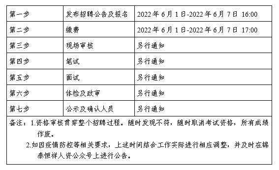 (二)體檢時(shí)間、地點(diǎn)及注意事項(xiàng)在“錦泰恒祥人資公眾號(hào)”進(jìn)行通知。
