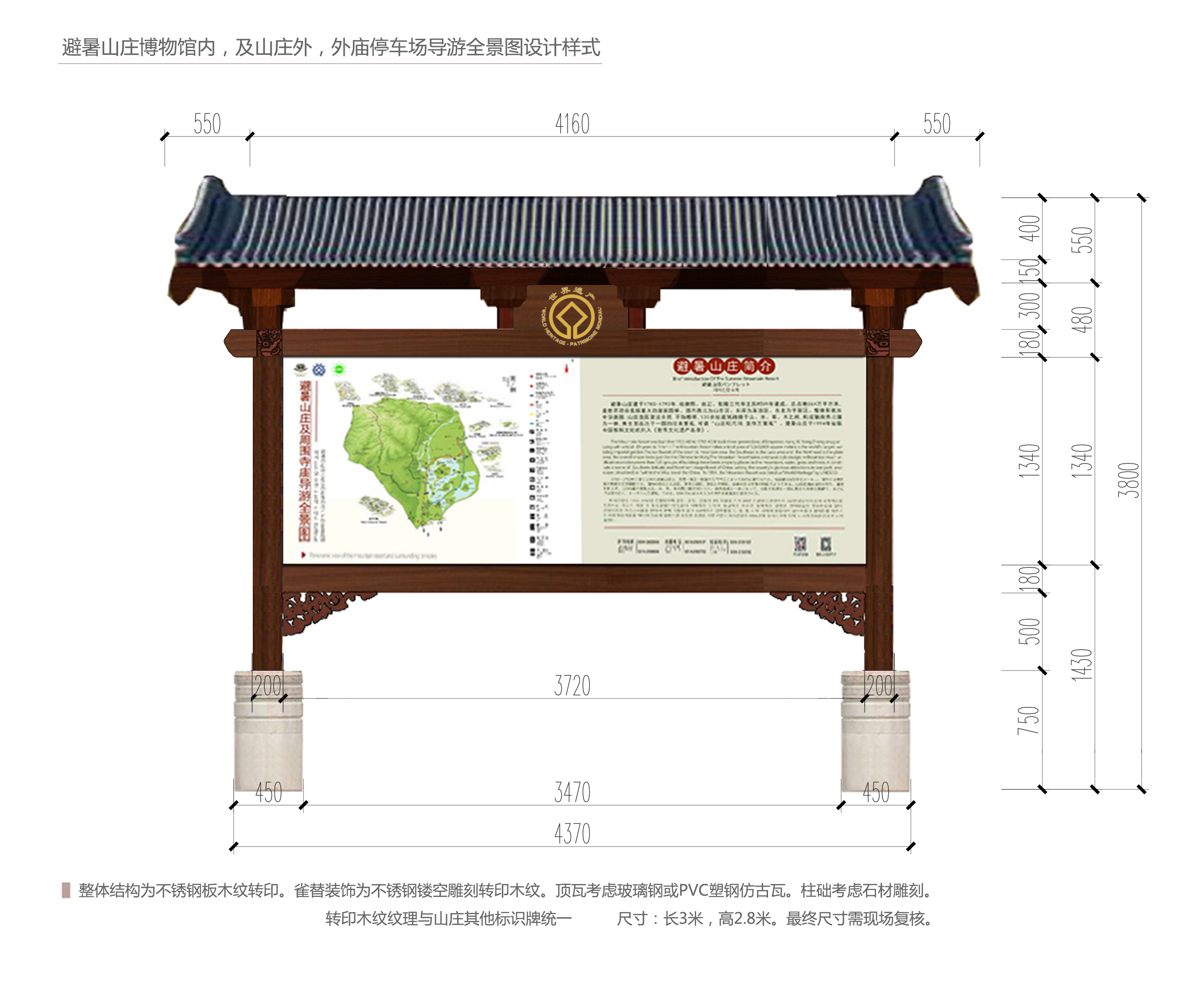 按照承德市人民政府辦公室印發(fā)的《避暑山莊及周圍寺廟景區(qū)整改提升專項工作方案》要求,在避暑山莊及周圍寺廟外5個停車場內(nèi),各設(shè)置景區(qū)導游全景圖1塊,由我公司邀請有資質(zhì)的單位進行制作和施工,現(xiàn)將有關(guān)事項通知如下:
